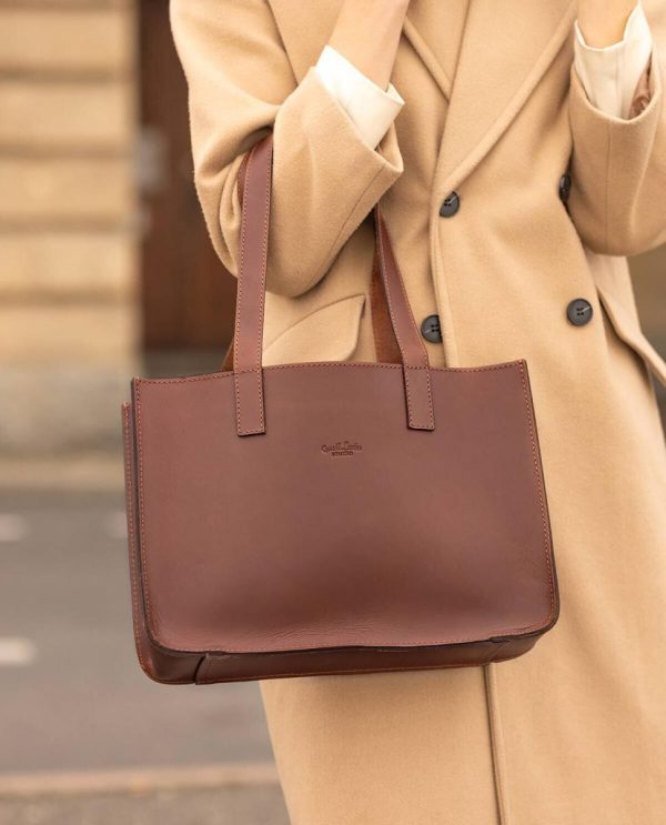 Shopper Handtasche Ledertasche Henkeltasche Laptoptasche Unitasche Bürotasche Freizeittasche Berliner Großstadt Flair Braun Leder