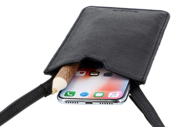 Umhängetasche Handytasche Ledertasche Schultertasche Handy Vintage Schwarz Leder