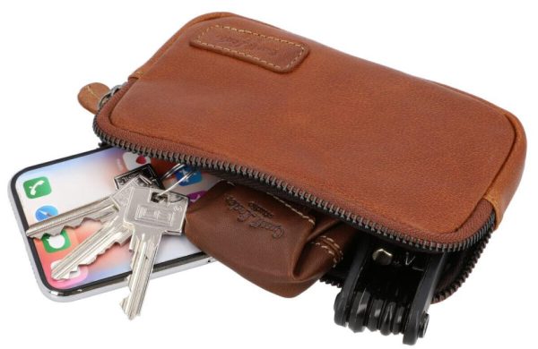 Schlüsseltasche Fahrrad Utensilientasche Schutzhülle Handytasche Braun Leder