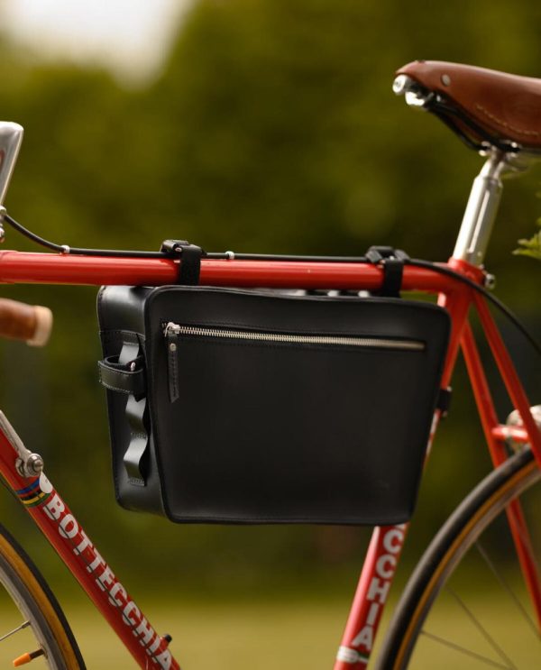 Rahmentasche Gepäckträgertasche Fahrradtasche Ledertasche Vintage Schwarz Leder