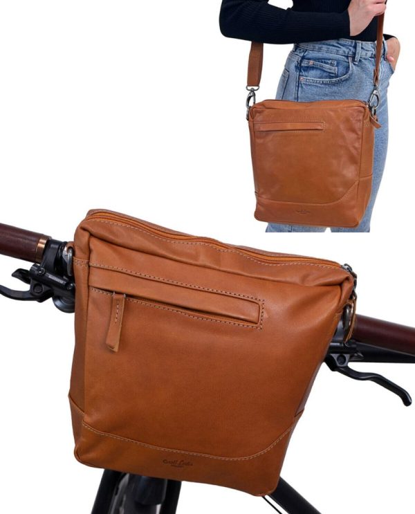 Fahrradtasche inkl. Platte Umhängetasche & Lenkertasche Braun Leder