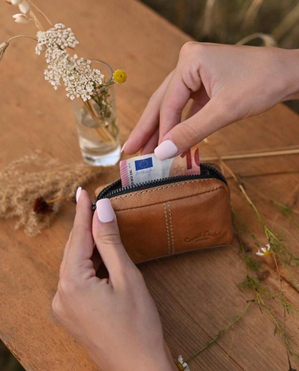 - handliches Kreditkartenformat mit ausreichend Tiefe für Schlüssel, etwas Geld usw.