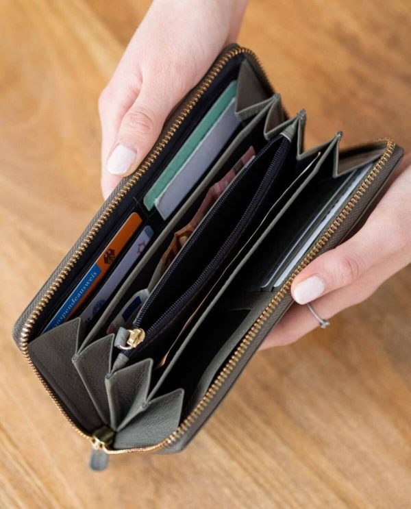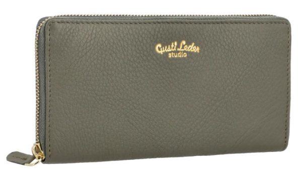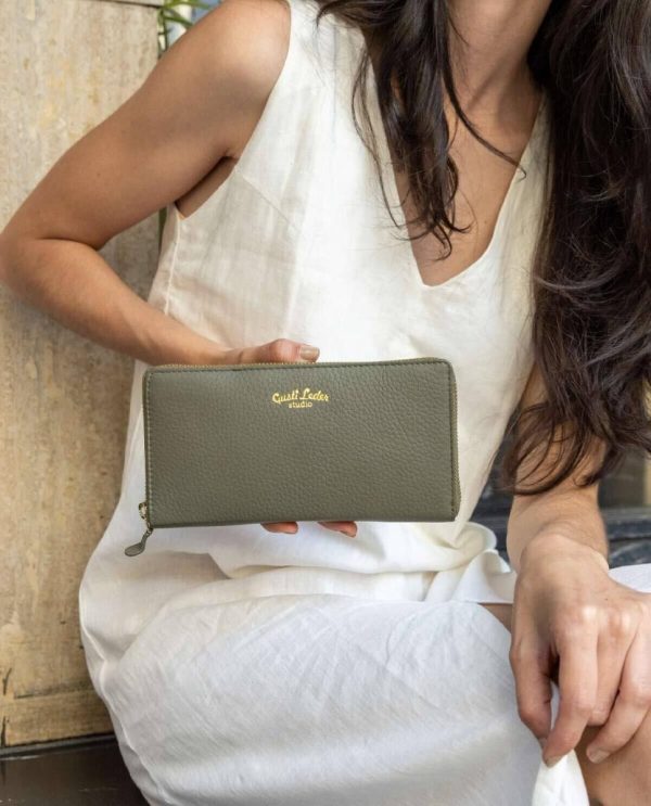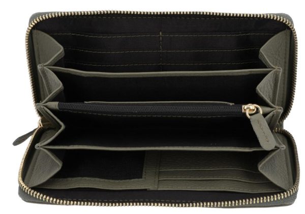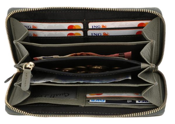 Geldbörse Portemonnaie Brieftasche lang Geldbeutel viele Fächer Damen Grau Leder