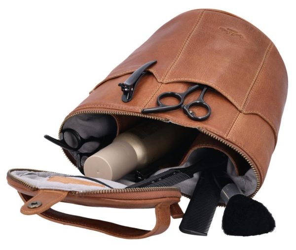 Friseurtasche Friseurbedarf Ledertasche Werkzeugtasche Braun Leder
