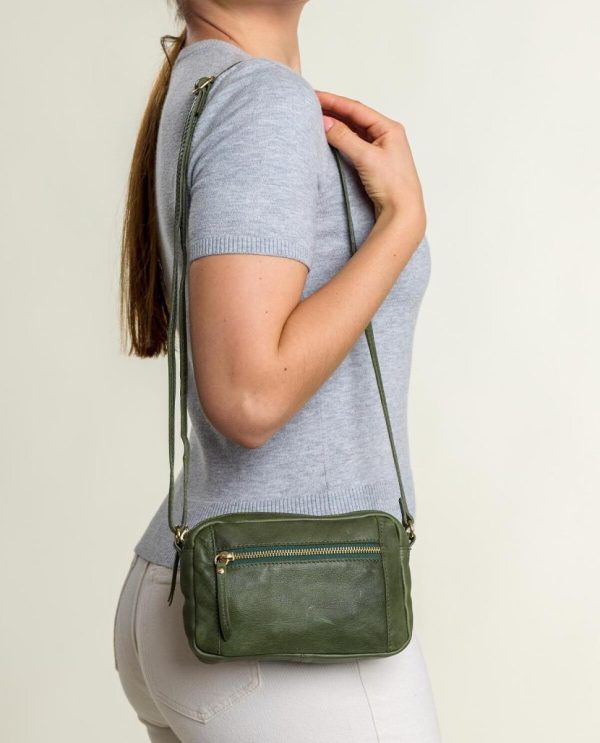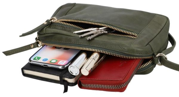 Umhängetasche Handtasche Ledertasche Vintage Grün Leder