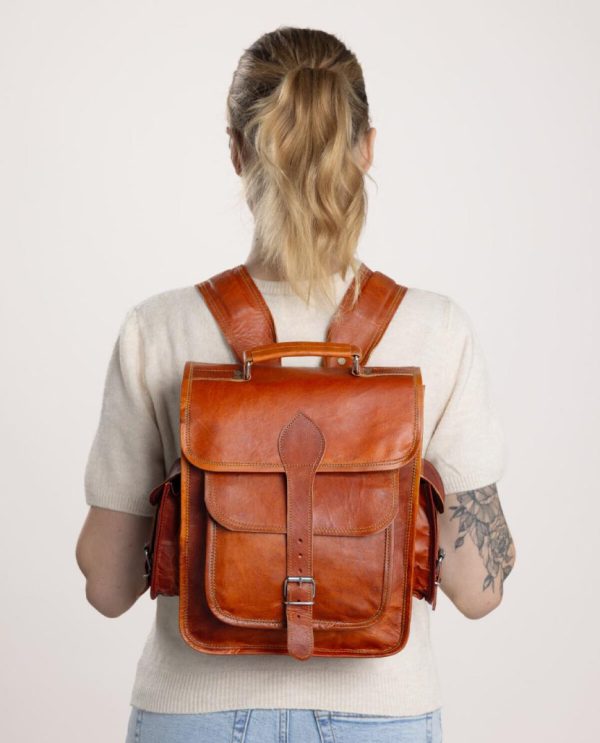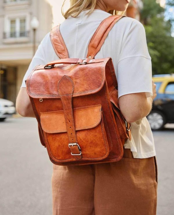 Rucksack Lederrucksack Berliner Großstadt Flair Damen Herren Vintage Braun Leder