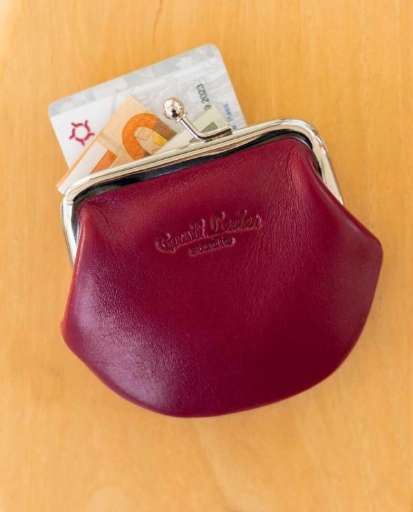 Portemonnaie aus Leder mit Clipverschluss Klickverschluss Spangenportemonnaie Geldbörse Klein Vintage Rot