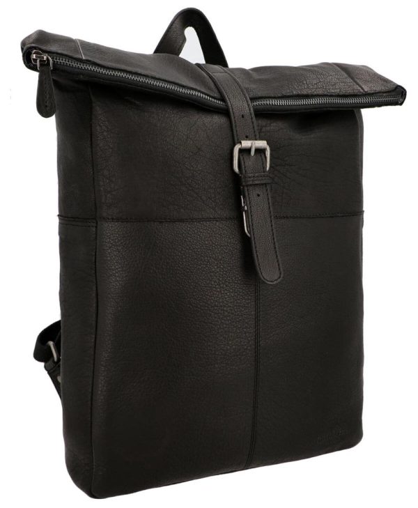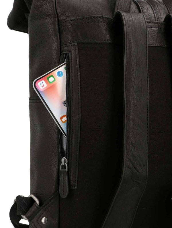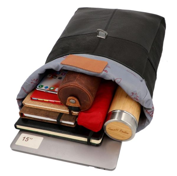 Rucksack Lederrucksack Vintage Damen Herren Schwarz Leder 13L
