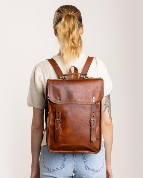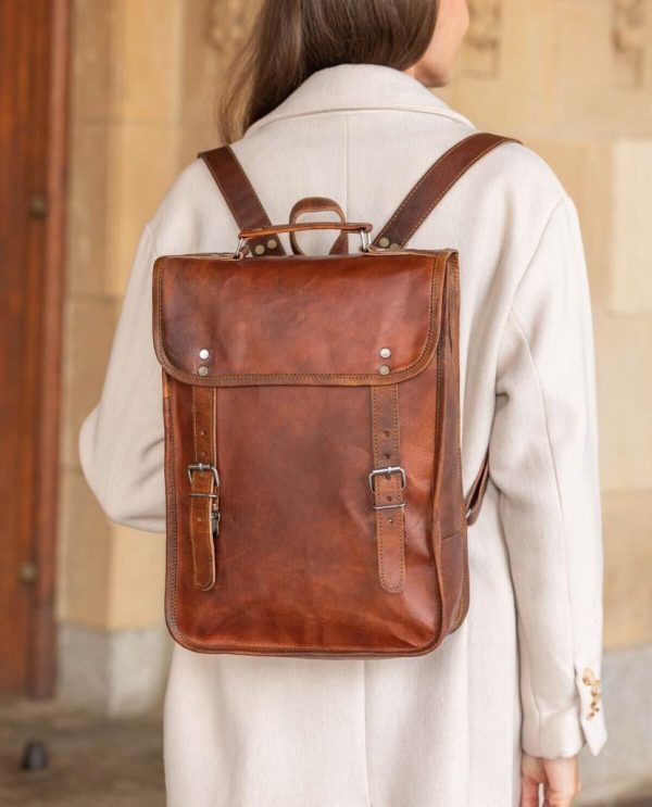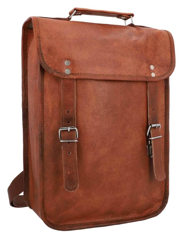 Rucksack Lederrucksack Vintage Damen Herren Braun Leder