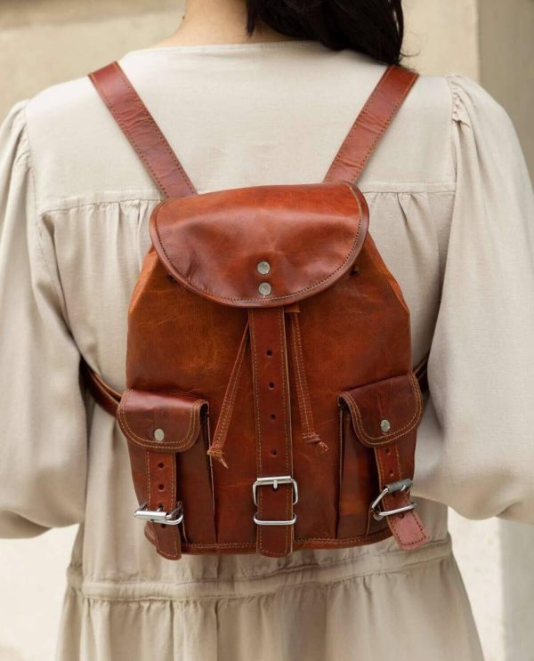 Rucksack Lederrucksack Damen Vintage Braun Leder