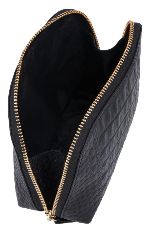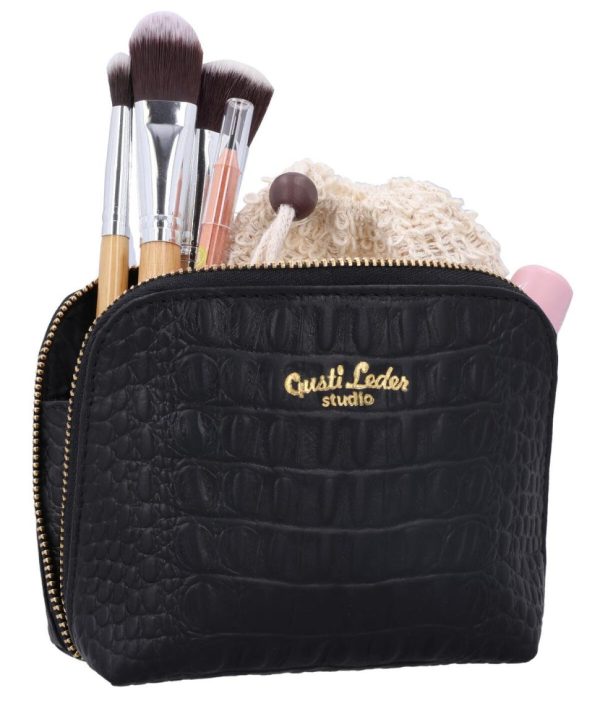 Kosmetiktasche Utensilientasche Kulturbeutel Waschtasche Schminktasche Kulturtasche Schwarz Leder