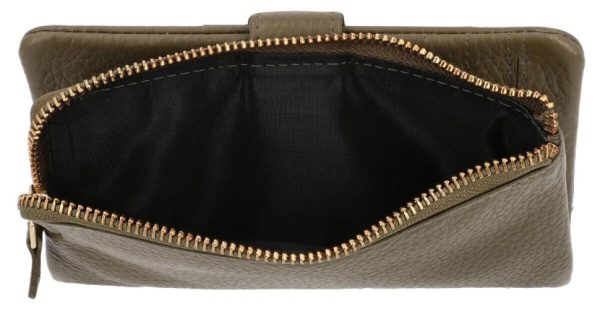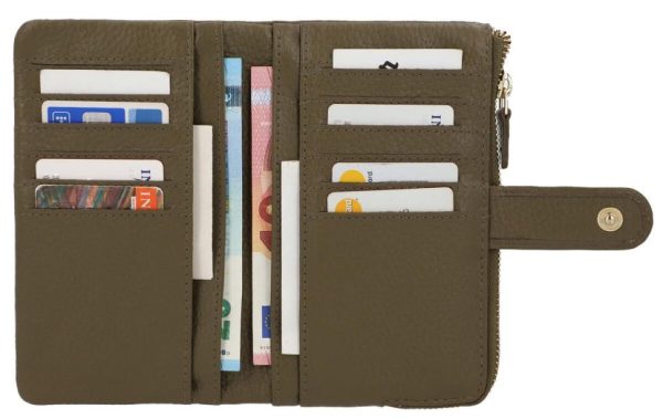 Geldbörse Portemonnaie Geldbeutel Kartenetui Vintage Damen extra Münzfach Grün Leder