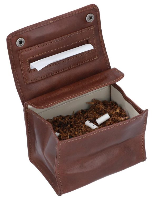 Tabaktasche Drehertasche Tabakbeutel Feinschnittbeutel Braun Leder