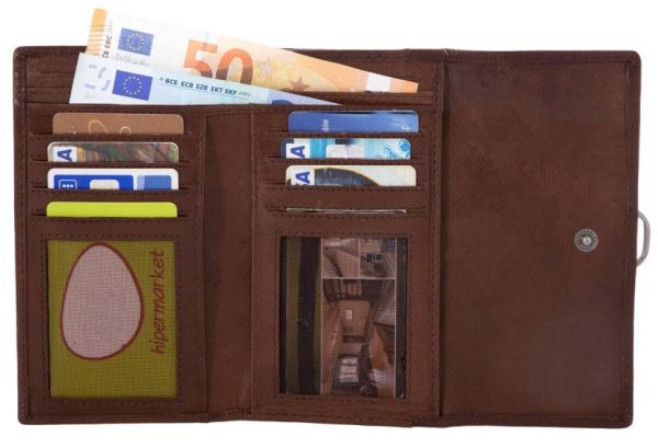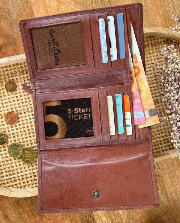 Geldbörse Portemonnaie Geldbeutel Vintage Damen Dunkelbraun Leder