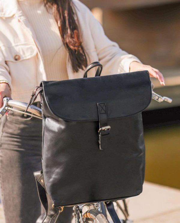 Rucksack inkl. Platte Fahrradrucksack Lederrucksack Damen Schwarz Leder 15L