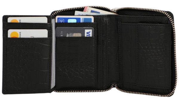 Geldbörse Portemonnaie Brieftasche Geldbeutel Damen Schwarz Leder