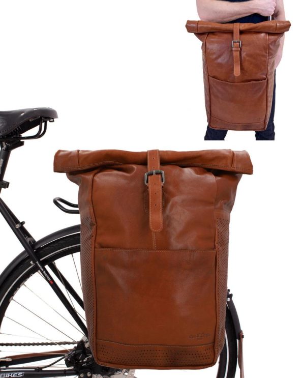 Gepäckträgertasche Packtasche mit Schultergurt Fahrradtasche groß Leder Braun 16L