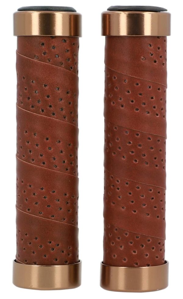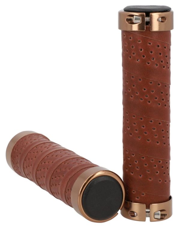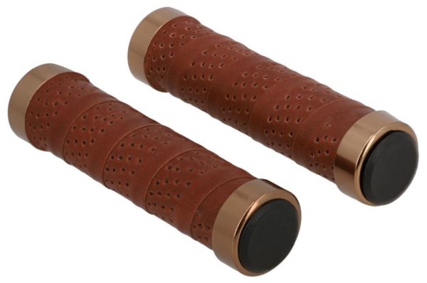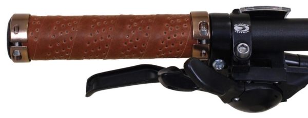 Fahrradgriff Ledergriff Lenkergriff 2er Set Rosagold Metallring Braun Leder
