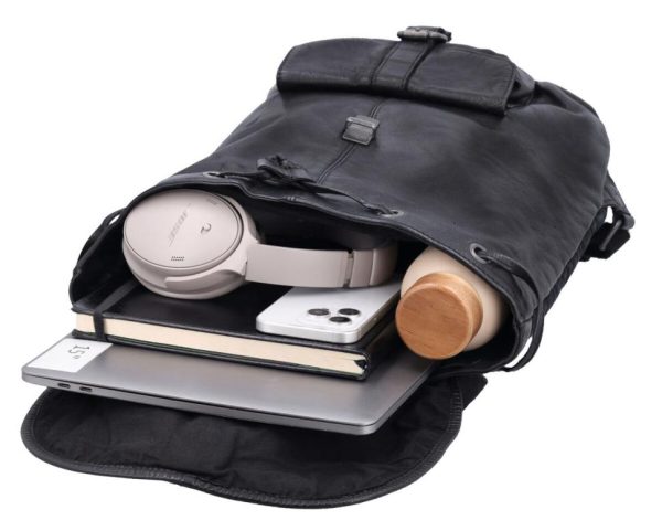 Rucksack Lederrucksack Vintage Cityrucksack Outdoorrucksack Laptoptasche Unirucksack Wanderrucksack Schwarz Leder
