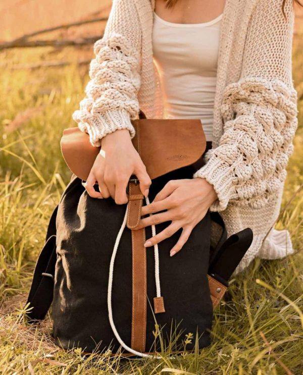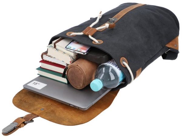 - Rucksack bestehend aus hochwertigem Canvas und chemisch gegerbtem Büffelleder