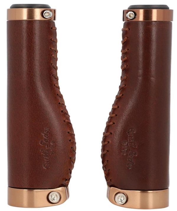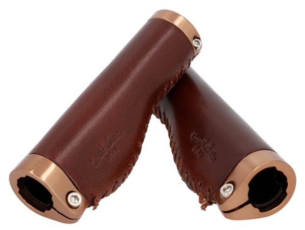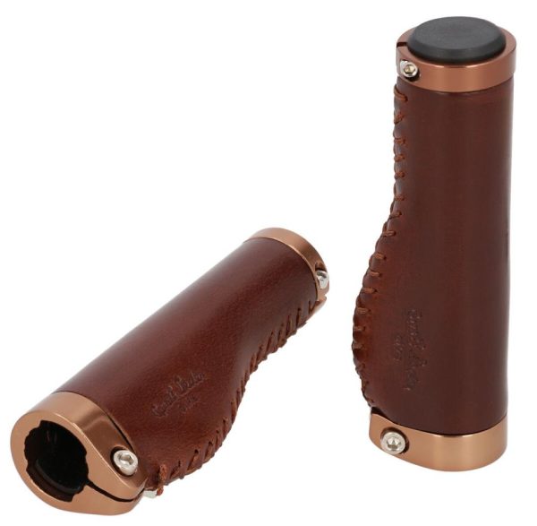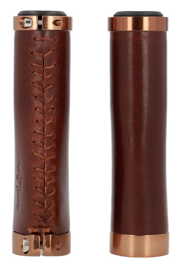 Echtes Leder Lenkergriff Fahrradgriff Ledergriff Braun Leder Metallring Rosegold – kleiner Produktionsfehler – Leder 2mm kürzer – sichtbar