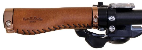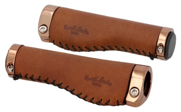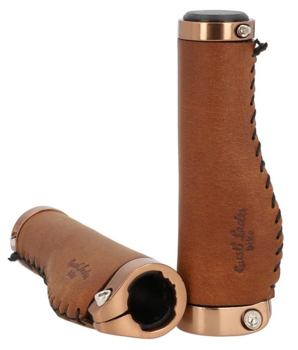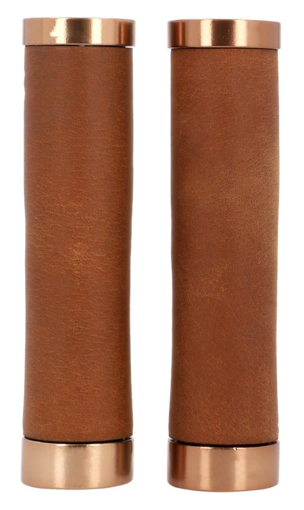 Echtes Leder Lenkergriff Fahrradgriff Ledergriff Braun Leder Metallring Rosegold 2er Set