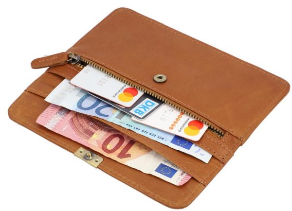 Portemonnaie Portmonee Geldbörse Brieftasche Geldscheintasche Clutch Damen Vintage Braun Leder