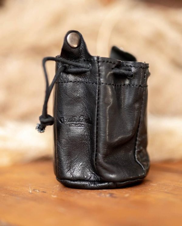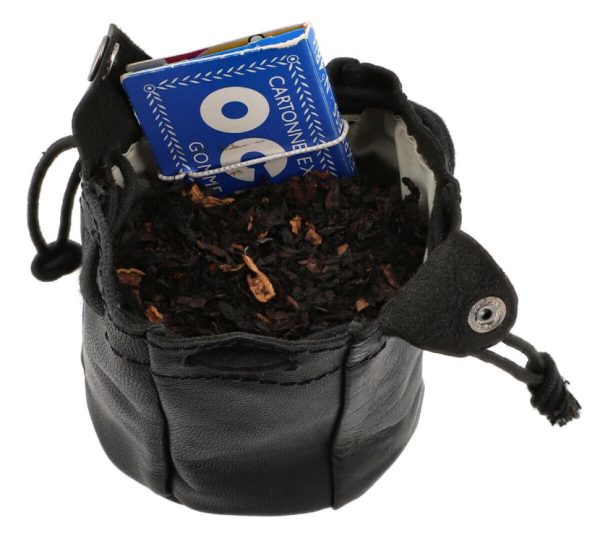 Tabakbeutel Tabaktasche Feinschnittbeutel mit Innenstoff aus Naturkautschuk Schwarz Leder