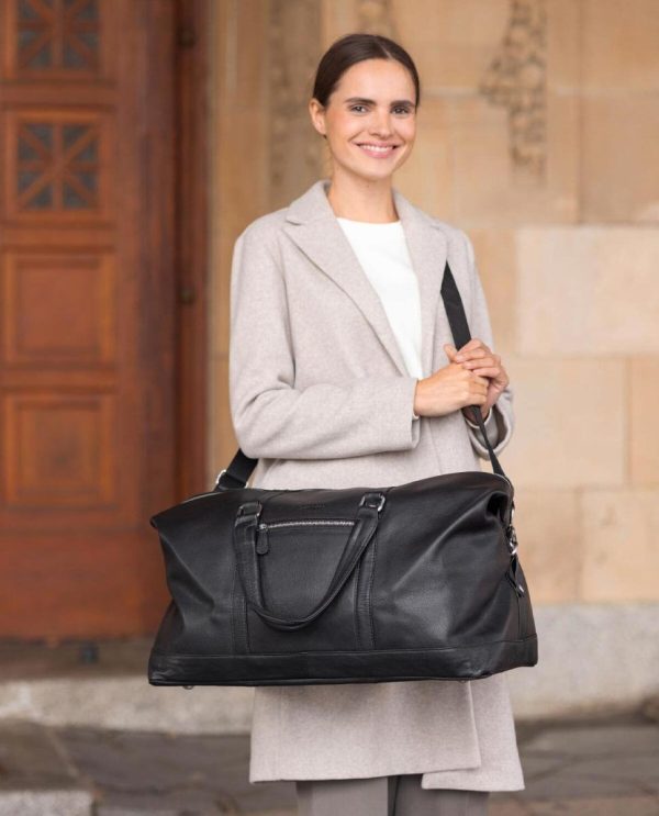 Reisetasche Handtasche Umhängetasche Ledertasche Damen Herren Tasche Schwarz Leder 36L