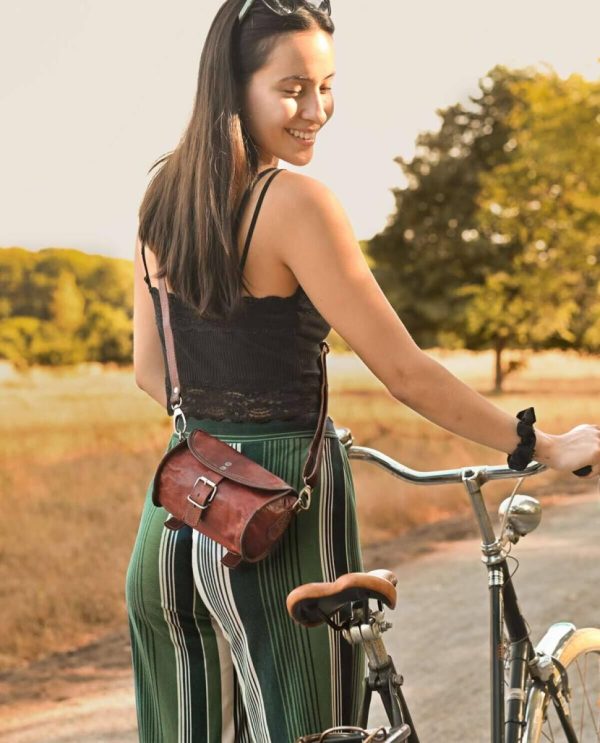 Lenkertasche Umhängetasche Fahrradtasche Ledertasche Vintage Braun Leder