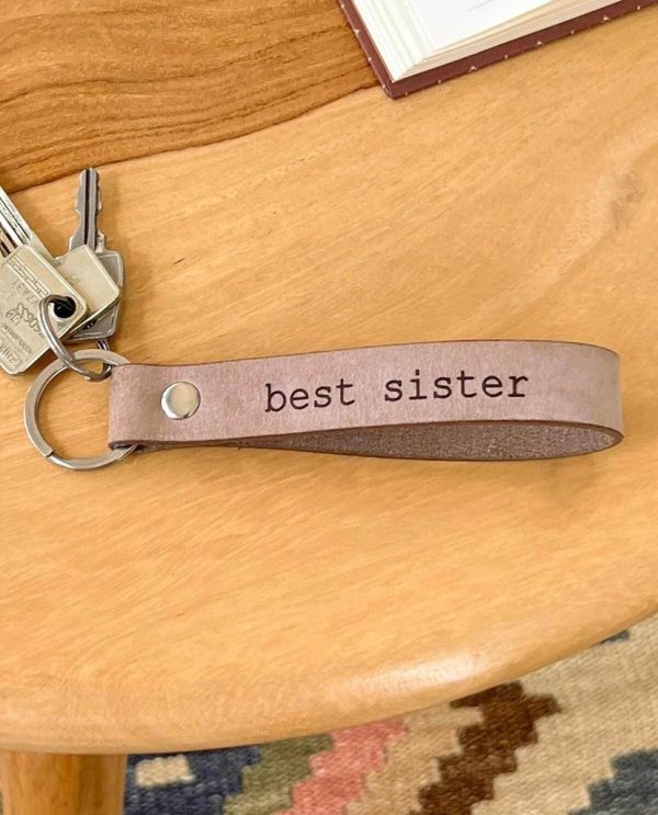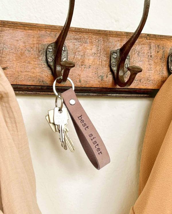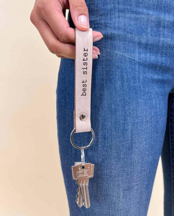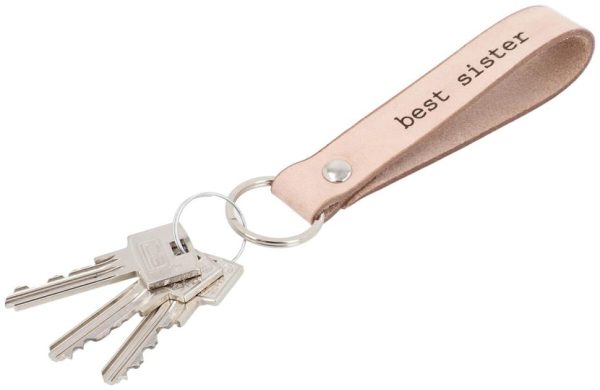 Schlüsselanhänger „best sister“ Schlüsselband Lederanhänger Hellbraun Leder