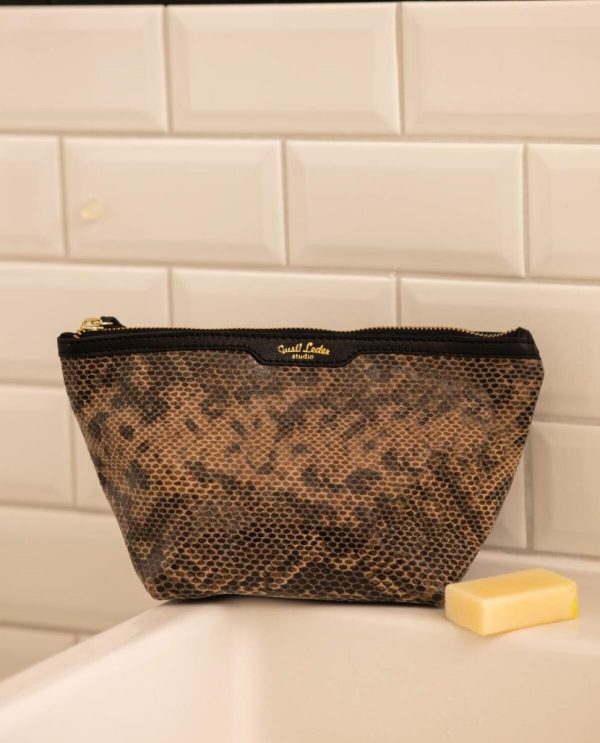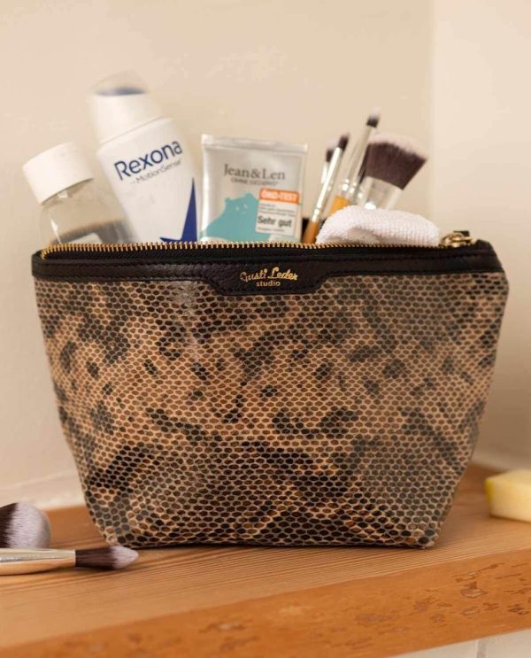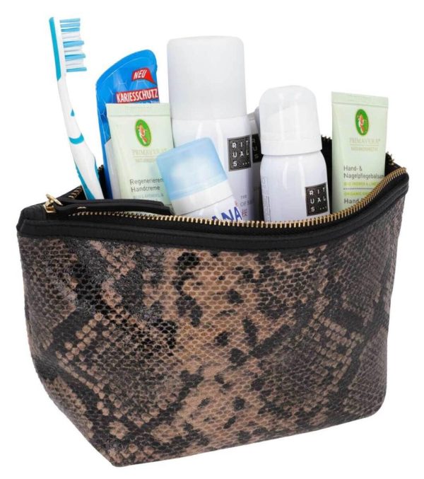 Kosmetiktasche Utensilientasche Kulturbeutel Waschtasche Schminktasche Kulturtasche Schlange Optik Leder