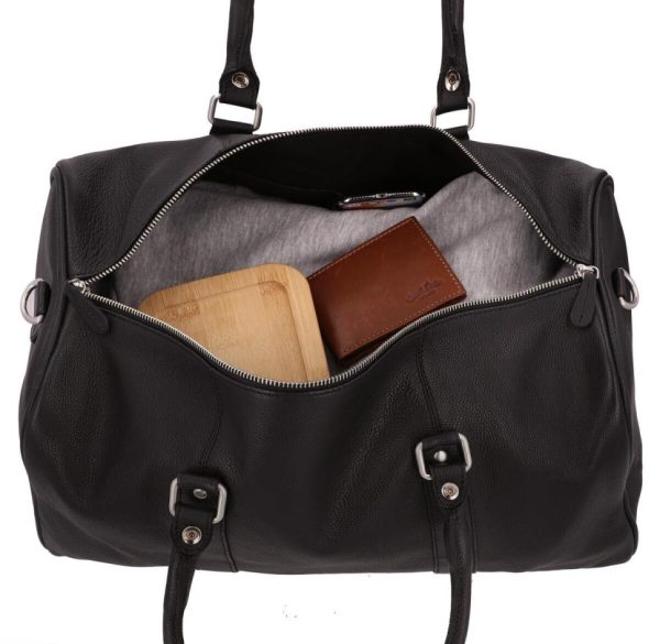 Reisetasche Sporttasche Weekender Handgepäck Schwarz Leder