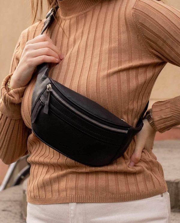 Limited Edition Gürteltasche Bauchtasche Umhängetasche Tasche Schwarz Leder
