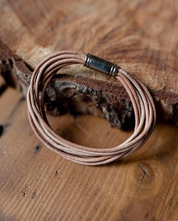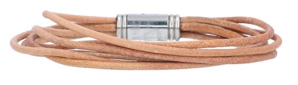 Armband Armreif mehrreihig mehrere Stränge Lederschmuck Surferarmband Freundschaftsarmband flexibel Lederarmband Schmuck Magnetverschluss dezent Größe S Beige Leder