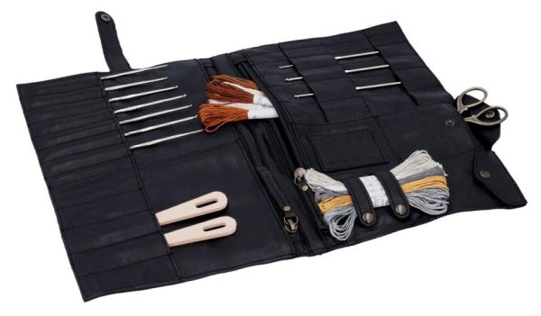 Strick- und Häkel-Werkzeugtasche Leder Werkzeugtasche Stricken Häkeln Schwarz Leder
